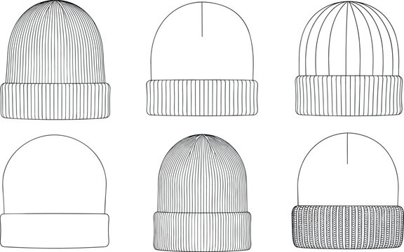 Beanie Hat Knit Stocking Cap Flat Illustration Cad Accessory Winter Streetwear Mockup Blank Vector