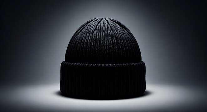 black woll beanie, winter beanie hat. beanie hat isolate white background. Blank Beanie Hat Mockup with Free Space for Your Design on a white background. Head cover suitable for winter.