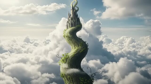 Epic Beanstock Leading to a Majestic Castle in the Clouds, Fantasy Adventure
