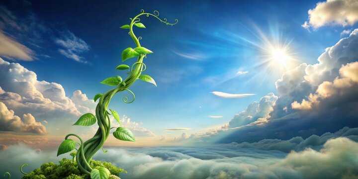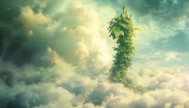enchanted landscape of jack and the beanstalk with giant beanstalk and lush greenery under sky
