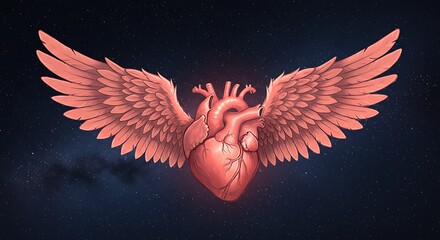 Graphic depiction of a winged heart against a starry, dark backdrop, representing emotions