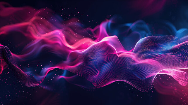 Musical abstract tech background. Equalizer with gradient color dots flow for sound and music waves. Color concept sound wave.