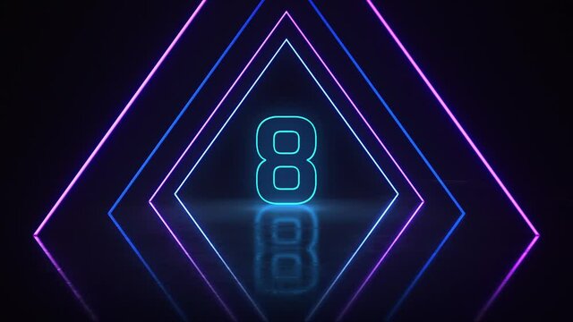 Blue Purple Triangle Neon Countdown 10 Seconds Beautiful Outline Retro Glow Light Box Color Dynamic Flying Animation Concept Background With Reflection
