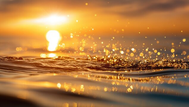 Golden sunrise over water.  Sun's rays sparkle on waves
