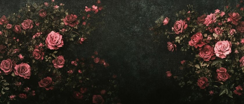 Floral vintage vibrant wallpaper oil painting of beautiful flowers and leaves, for background, cards, banners, lifestyle themes, romantic, copy space