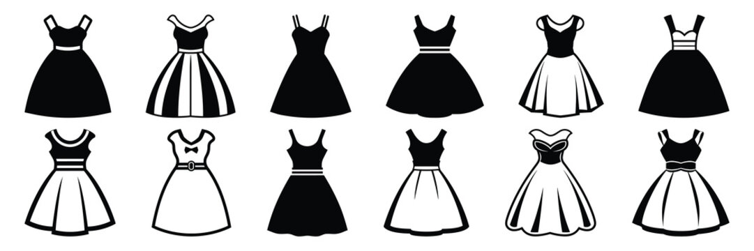 set of silhouette of various vector woman's dress