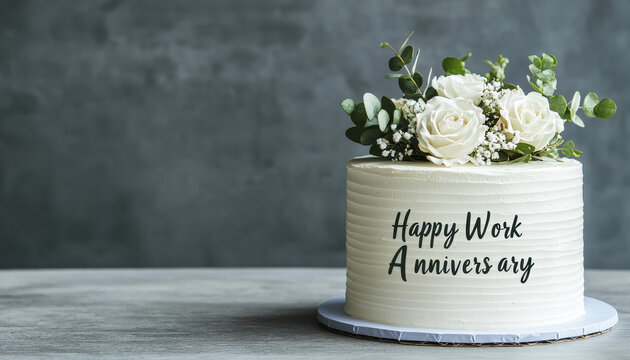 Happy anniversary at work is joyful occasion celebrated with beautiful cake adorned with fresh flowers