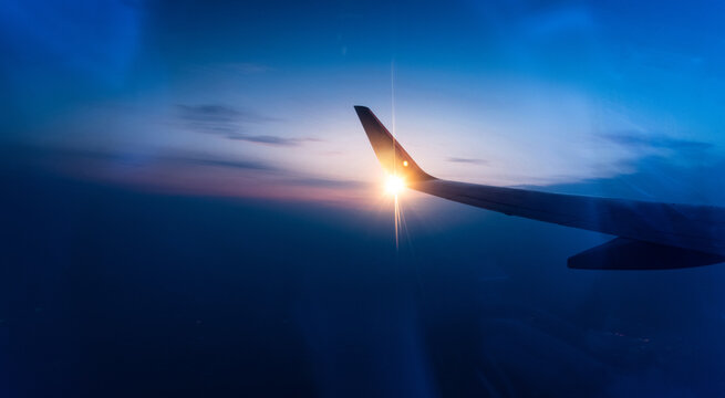 Beautiful sunset viewed through airplane window