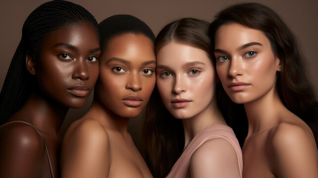 Closeup of a diverse group of women together. Skin care concept image. Generative AI.