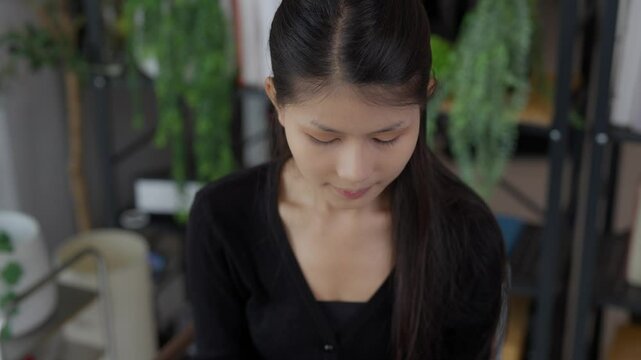 Young woman beauty blogger broadcasts live streaming to review makeup and cosmetic products on social media,applies patches under the eyes.Beauty and technology concept.Selective focus.