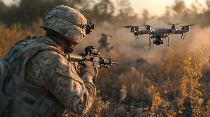 Soldier launch a combat FPV drone to carry out a complex tactical mission