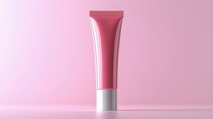 A stylish pink skincare tube displayed against a soft pink background. Ideal for cosmetic packaging in a beauty context.