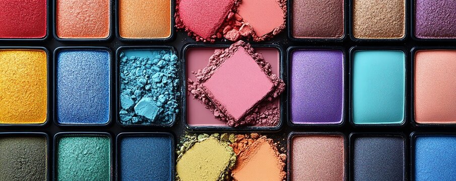 Assorted eyeshadow palettes in vibrant colors, neatly displayed, showcasing beauty and cosmetic diversity, concept of makeup options enhanced by generative AI design