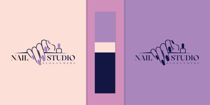 Nail polish or nail studio logo design with creative element and unique concept Premium Vector
