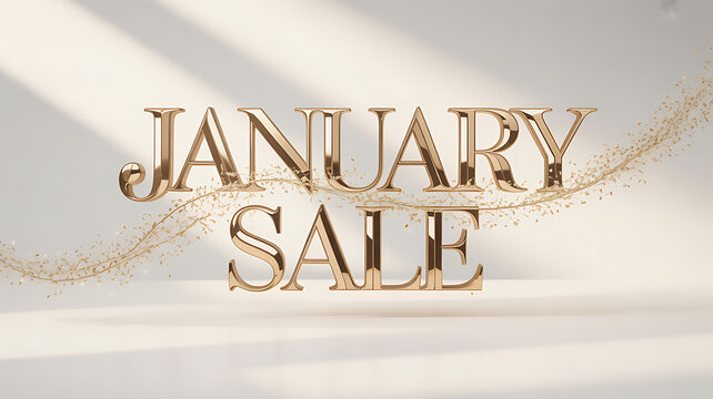 Elegant 3d golden text january sale with sparkling particles isolated on white background