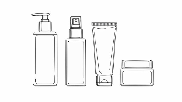 Set of cosmetic bottles and jars for skincare products.