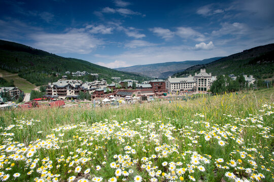 A field of daisies adorns Beaver Creek Resort in Colorado in the summer.