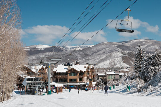 Beaver Creek Ski Day in Rocky Mountains. Arrowhead base area.