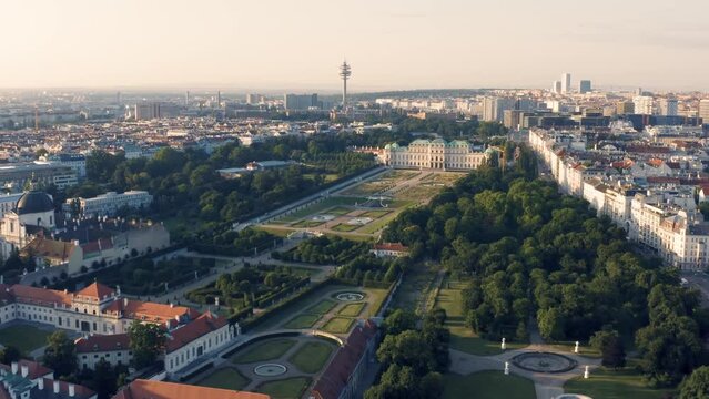 Vienna city skyline aerial shot. Cityscape of Vienna center, Austria