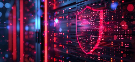 Protection network security and safe your data from ransomware concept. Cyber protection shield icon on server. Information Security and virus detection for (BEC)Business Email Compromise