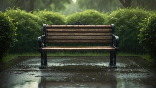 Garden Bench On Jakarta Walkway After The Rain becomes Garden Bench on Jakarta Pathway Following the Rain.