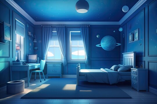 Wall mockup in child room interior. Nursery Interior in scandinavian style. 3d rendering, 3d illustration