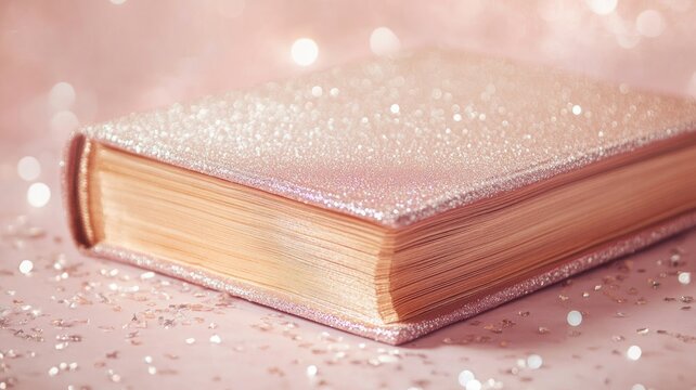 Sparkling, glitter-covered book on pink background