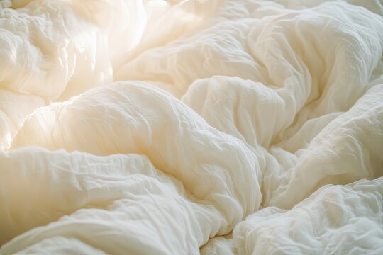 Luxurious white bedding set with fluffy pillows and comforter on a bed