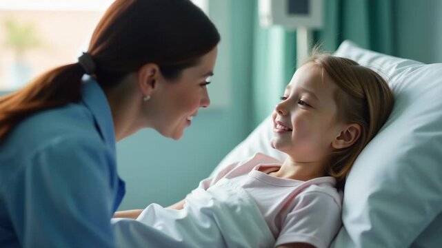 Senior patient laughing with visitor in hospital - Elderly man in a hospital gown laughs with a visitor, creating a light-hearted atmosphere