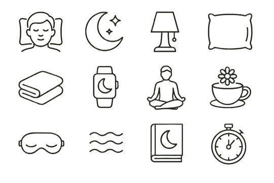 Sleep and relaxation icon collection with minimalist, colorful, and silhouette styles