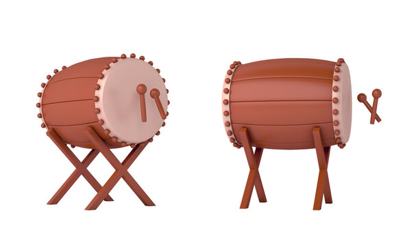 Islamic bedug drum isolated on white background cartoon style, ramadan kareem, mawlid, iftar, isra  miraj, eid al fitr adha, muharram decoration, 3D rendering illustration.