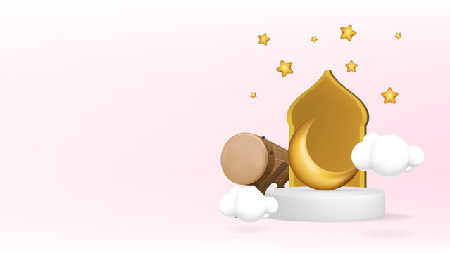 3d illustration of ramadan kareem with podium bedug and islamic decoration
