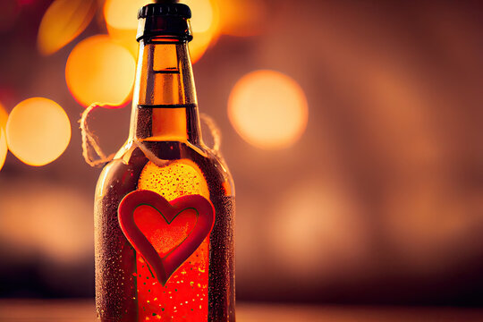 Beer lover 3d illustration, heart shape stylized for glasses filled with beer,Love beer concept.