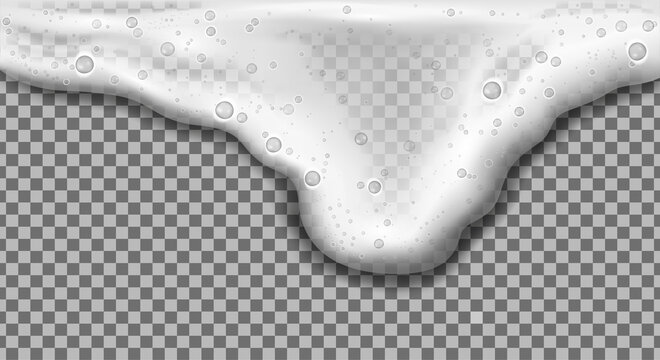 Beer foam isolated on transparent background. White soap froth texture with bubbles, seamless border, foamy frame. Sea or ocean wave, laundry cleaning detergent spume, realistic 3d vector illustration