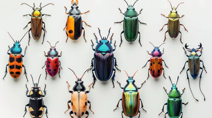 collection of colorful beetles on white background