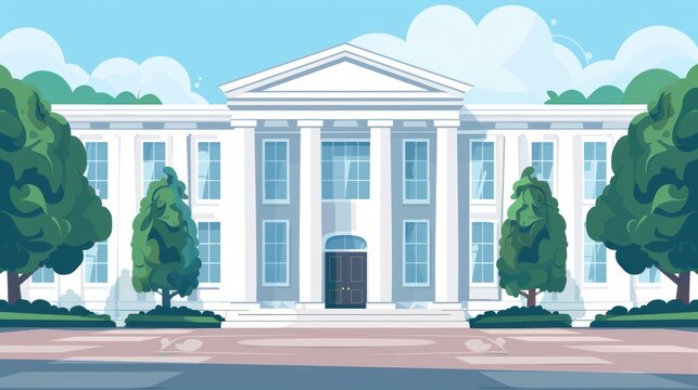front view of a grand building, befitting a courthouse, bank, university, or governmental institution