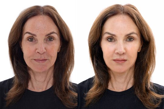 Vorher Nachher Reife Frau Gesicht Vergleich Porträt