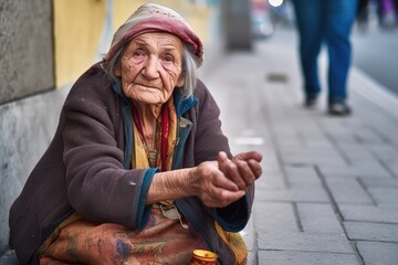 Banner Homeless people poverty beggar man asking for money job hope help in desperate helpless dirty city sitting with sign "Homeless Please Help" on cardboard. Design Element with copy space