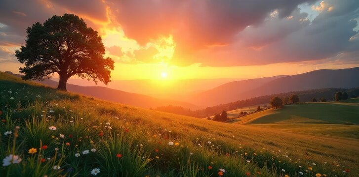 A sunrise over a peaceful, tranquil landscape, symbolizing the hope and new beginnings found in Christian faith Perfect for Easter, Lent, or general religious themes , tranquil, light