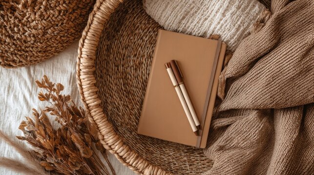 Autumn Dried Flowers Frame on Retro Paper Texture Top View Mock Up