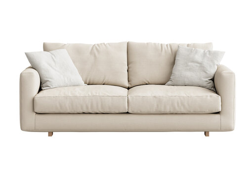 3d rendering of a modern beige soft comfortable sofa, isolated on transparent background, cutout ready for architectural visualisation., png