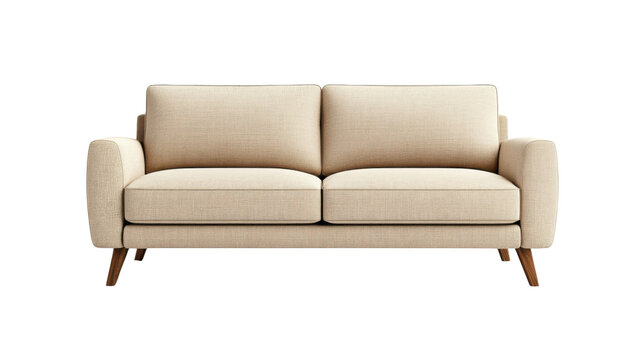 2 seat fabric beige color sofa comfy with wood legs on white background. front view. isolate background.