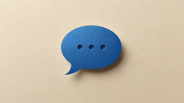 Blue speech bubble with minimalistic design floating against beige background, symbolizing communication and conversation.