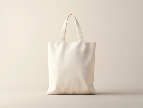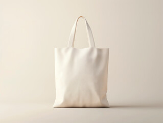A plain white tote bag on a light beige background. This mockup is great for showcasing design ideas.  Generative AI