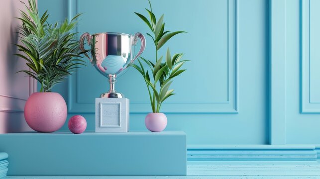 A symbolic 3D illustration of a silver trophy on a podium, signifying being the best and standing out among others.