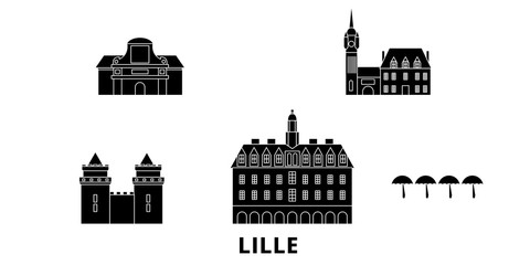 France, Lille flat travel skyline set. France, Lille black city vector illustration, symbol, travel sights, landmarks.