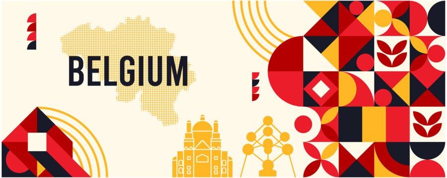 Belgium Geometric Modern Art with Landmarks and National Flag Colors