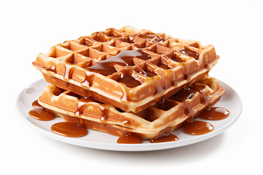 Collection of 12 Liege Style Belgian Waffles with Sweet Toppings Isolated on White Background