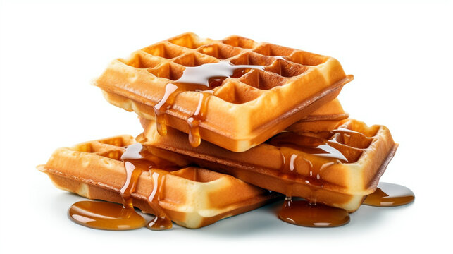 Traditional belgian waffles with fresh blueberries, sugar and raspberries on rustic table