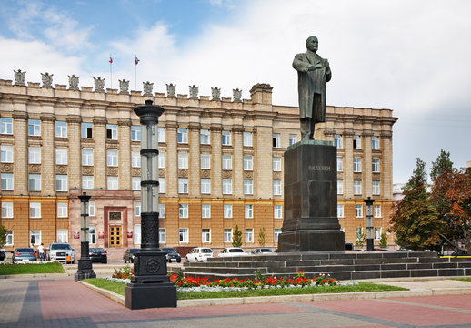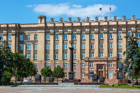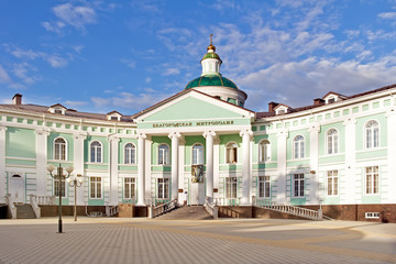 Russia, Belgorod city skyline isolated vector illustration. Russia, Belgorod travel cityscape with landmarks